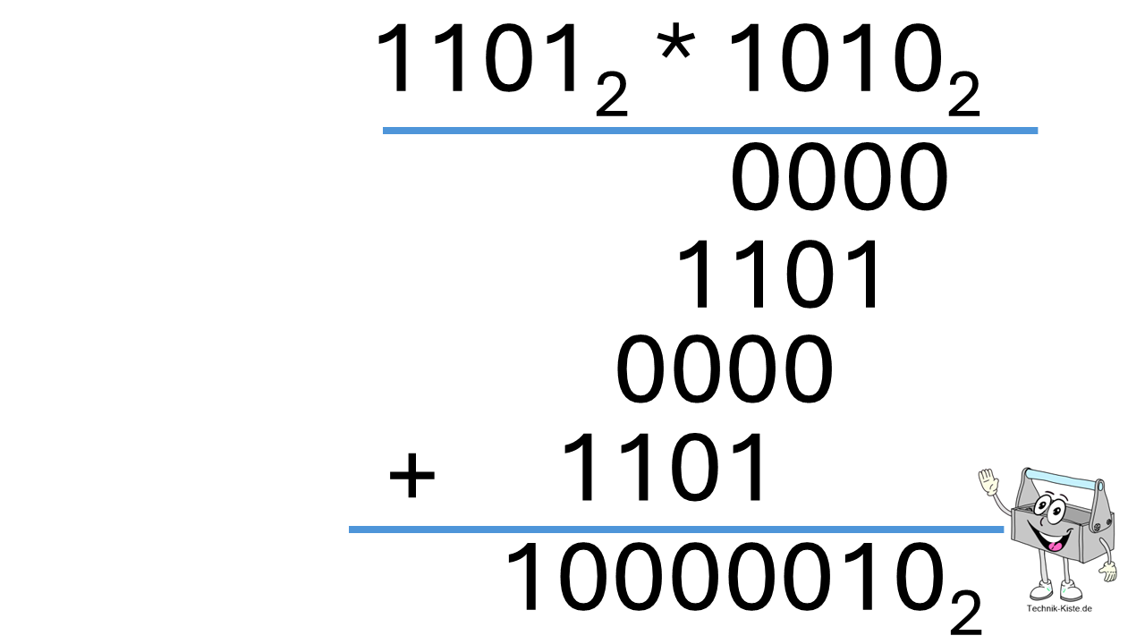Schriftliche Multiplikation im Binärsystem. Quelle: Technik-Kiste.de