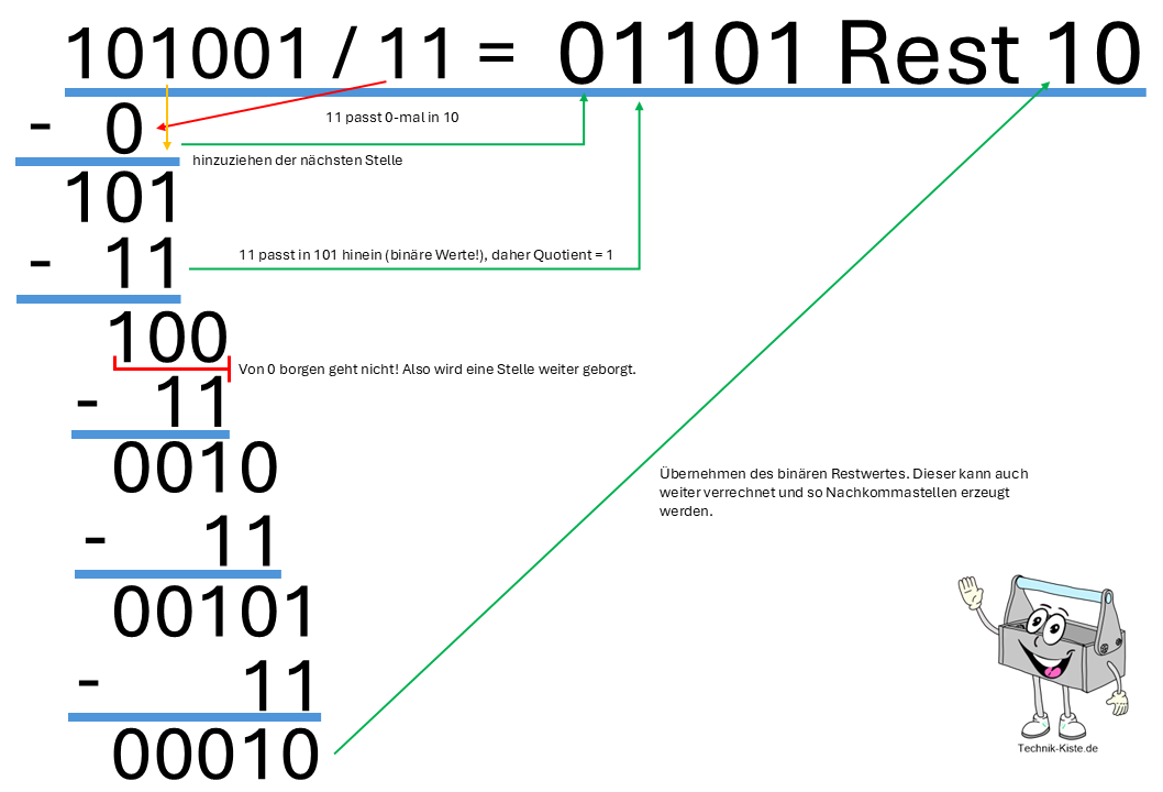 Division zweier binärer Zahlen. Quelle: Technik-Kiste.de