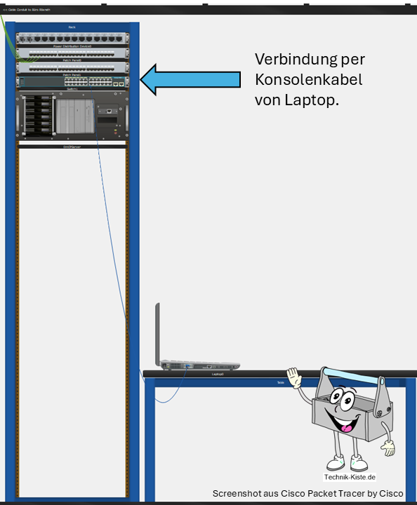 Beispielhafter Schrankaufbau im Cisco Packet Tracer. Quelle: Cisco Packet Tracer by Cisco | Bearbeitet durch Technik-Kiste.de