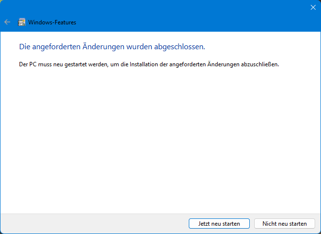 3. Windows installiert die erforderlichen Komponenten. Ein Neustart ist erforderlich.