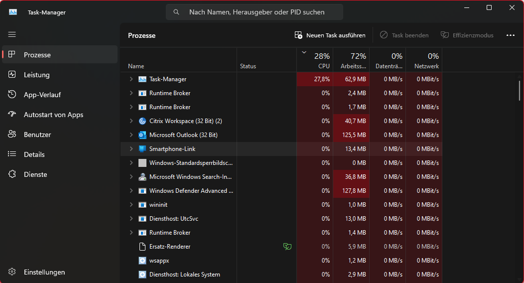 Startseite des Task-Managers. Quelle: Screenshot Micrososft Windows