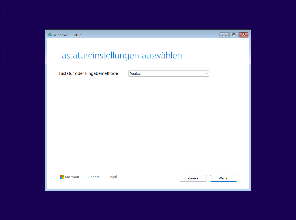 Auswahl des Tastaturlayouts. Quelle: Screenshot Microsoft Windows 11 Installation