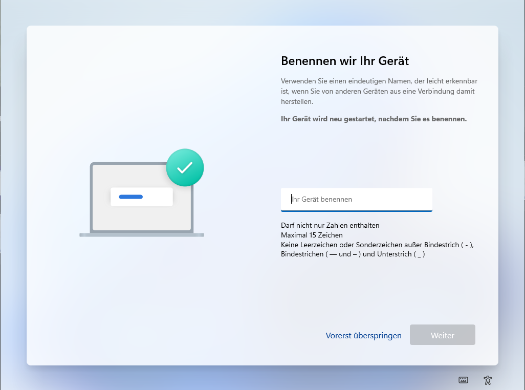 Benennen des Gerätes. Quelle: Screenshot Microsoft Windows 11 Installation