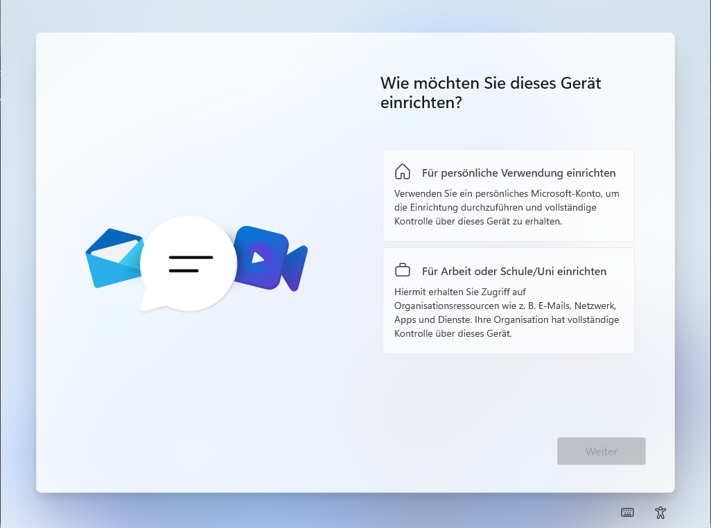 Auswahl der Setupoptionen. Quelle: Screenshot Microsoft Windows 11 Installation