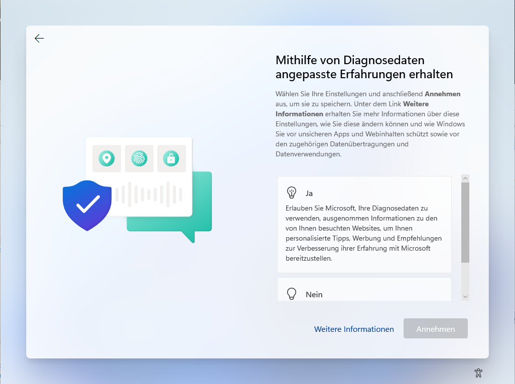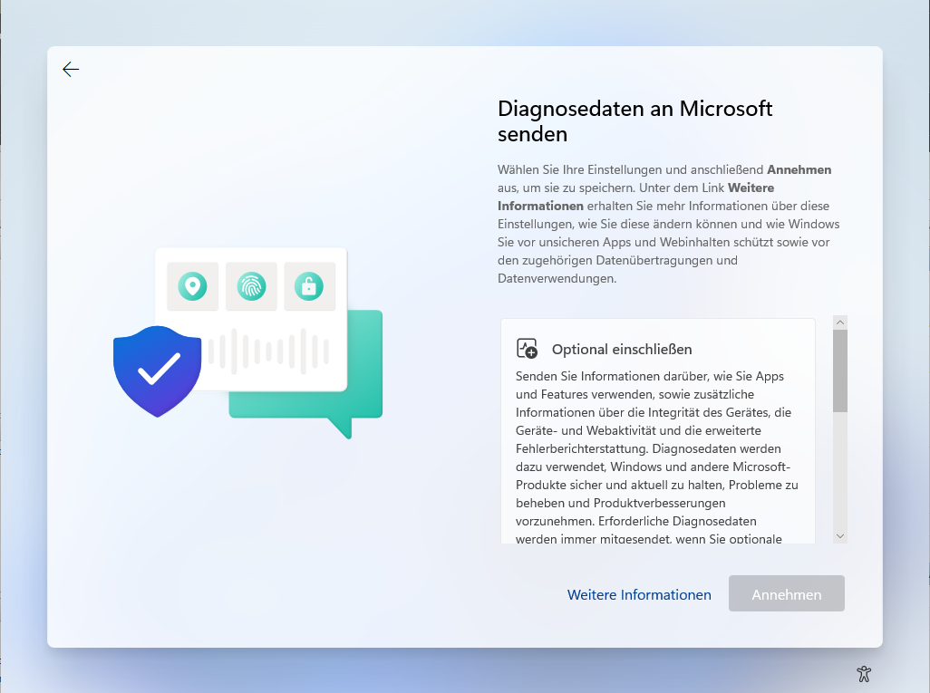 Auswahl der Diagnosedaten. Quelle: Screenshot Microsoft Windows 11 Installation
