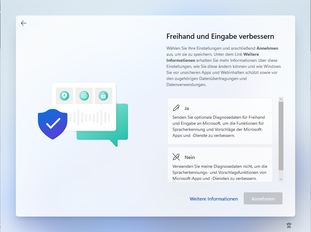 Verbesserung von Freihand und Eingaben. Quelle: Screenshot Microsoft Windows 11 Installation