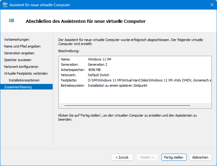 Vorbereitung und Installation der benötigten Software-Komponenten. Quelle: Screenshot Microsoft Windows 11 Installation