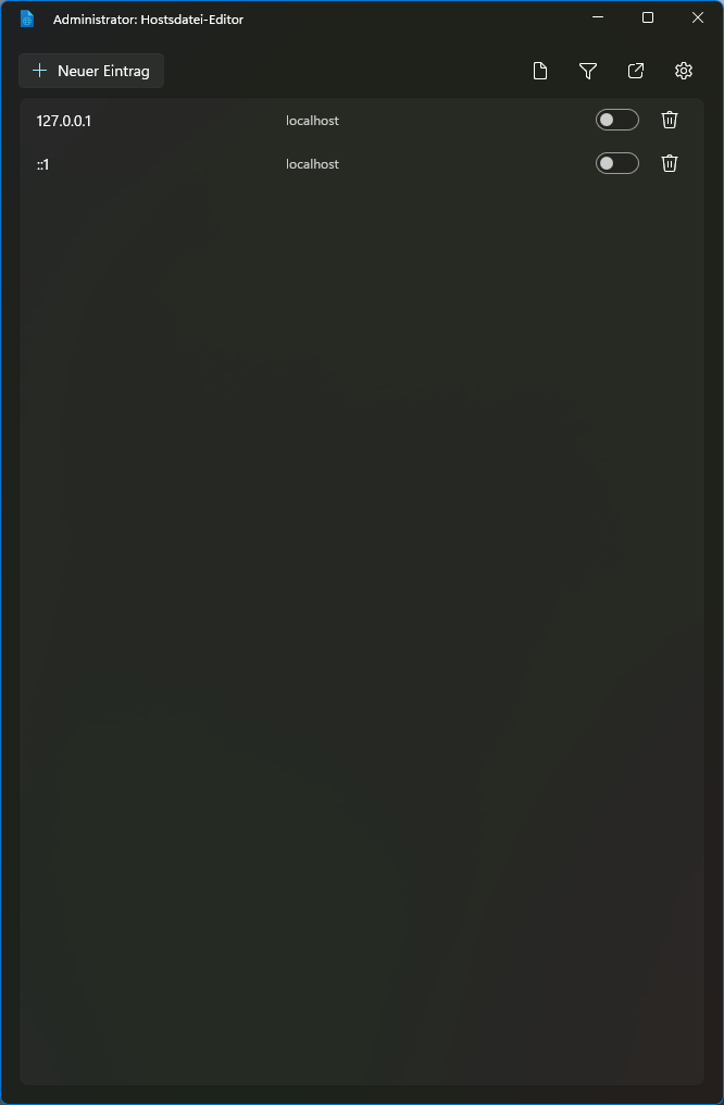 Oberfläche des Hostdatei-Editors. Quelle: Screenshot Hostdatei-Editor Microsoft PowerToys