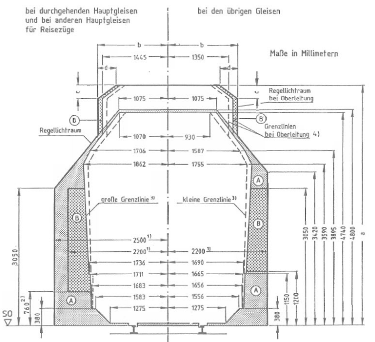 Regellichtraum nach EBO Anlage 1. Quelle: Eisenbahn Bau- und Betriebsordnung Anlage 1 Bild 1