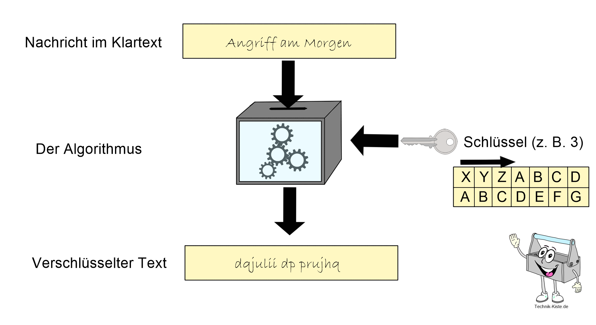 Bei der Cäsar-Chiffre handelt es sich um eine monoalphabetische Substitution. Dies bedeutet, dass jeder Buchstabe im Klartext fest mit einem anderen Buchstaben vertauscht wird. Der Schlüssel bestimmt dabei, wie weit die Buchstaben vertauscht werden. Das Ergebnis ist der Chiffretext.
