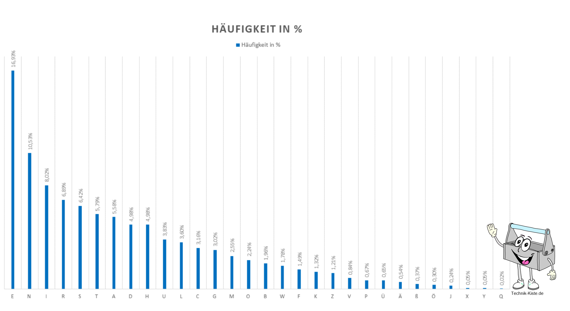 Ebenfalls führt eine Häufigkeitsanalyse sehr leicht zum entschlüsselten Text. So kann anhand der Häufigkeit eines Buchstaben im Text auf den Klartextbuchstaben geschlossen werden. Dafür werden statistische Werte der jeweiligen Sprache herangezogen.