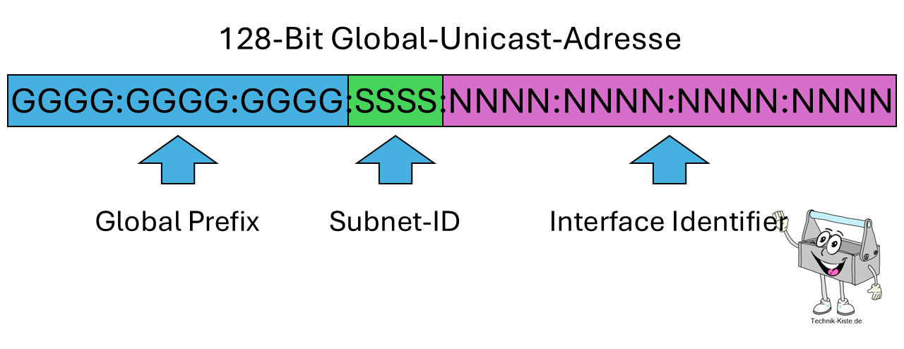 Aufbau von IPv6-Global-Unicast-Adressen. Quelle: Technik-Kiste.de