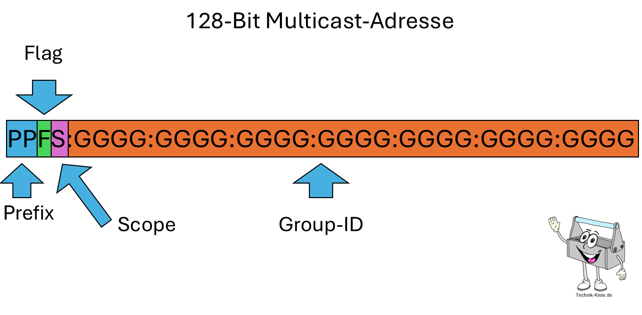 Aufbau von IPv6-Multicast-Adressen. Quelle: Technik-Kiste.de
