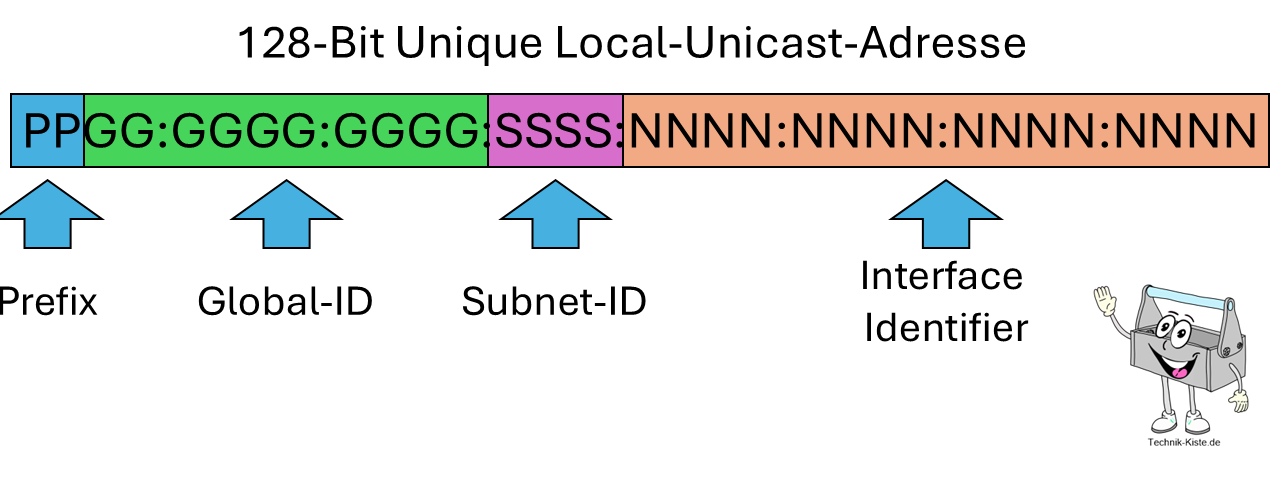 Aufbau von IPv6-Unique Local Unicast-Adressen. Quelle: Technik-Kiste.de