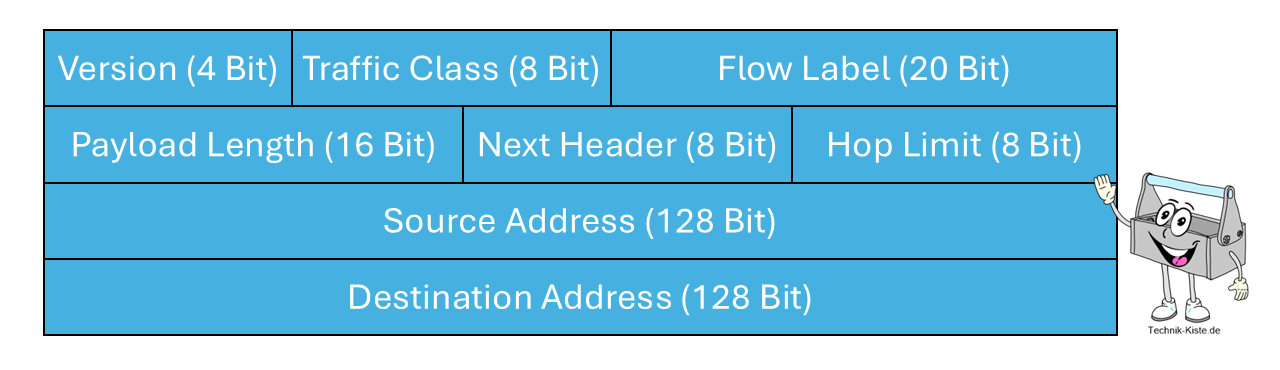 Aufbau des IPv6-Headers. Quelle: Technik-Kiste.de