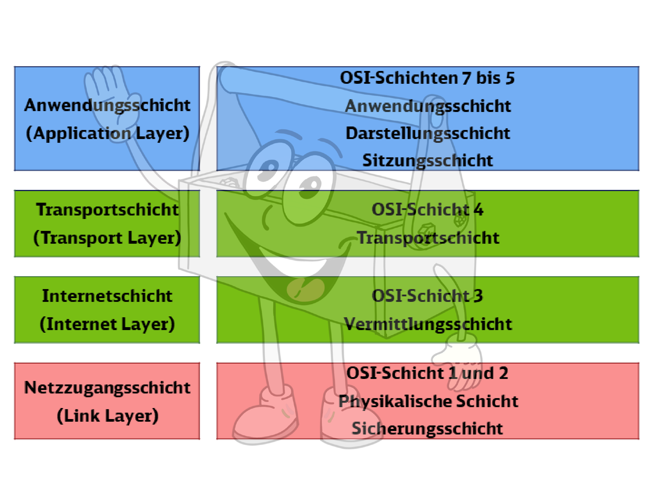 - Jede Ebene stellt ihre Dienste der darüberliegenden Ebene zur Verfügung