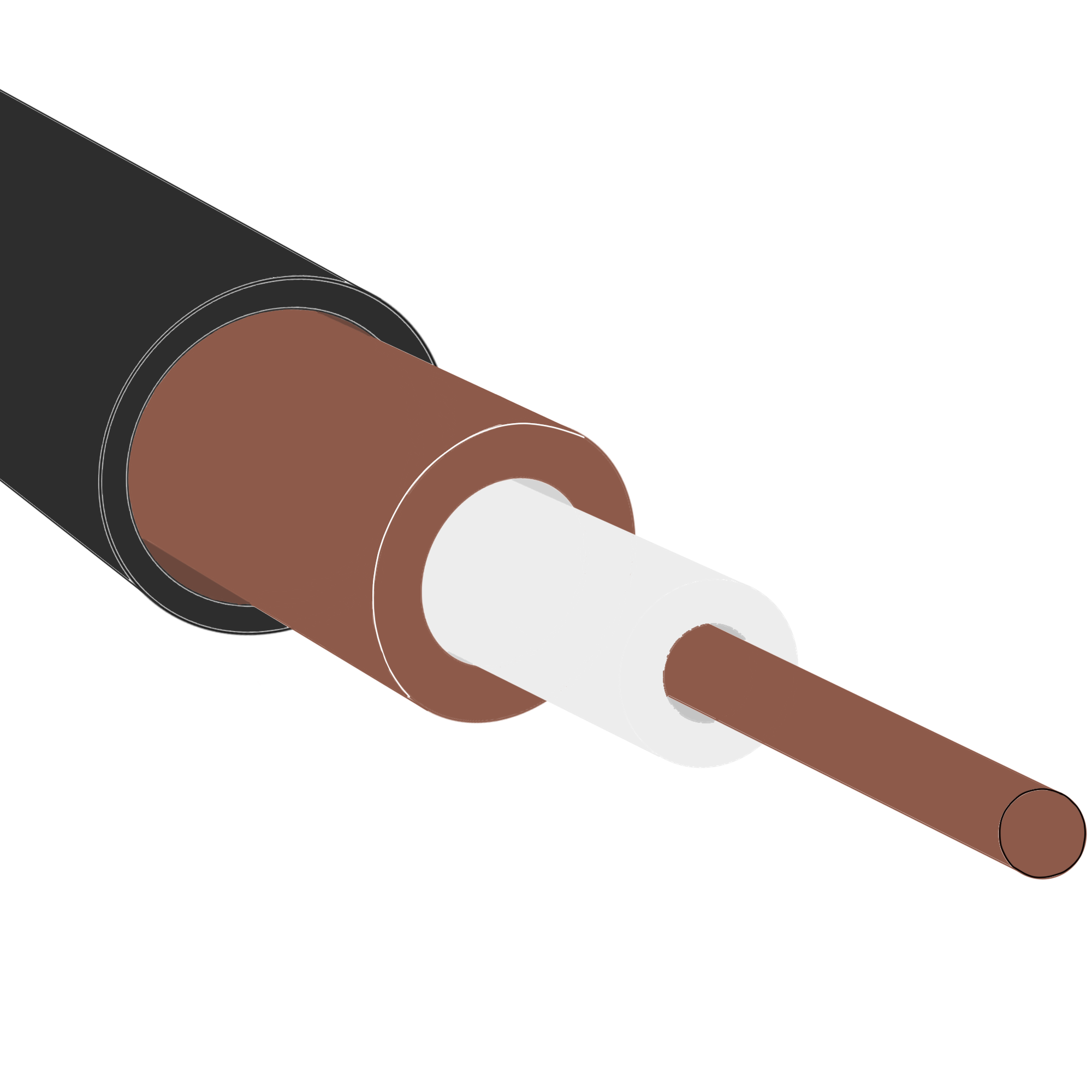 Ein Koaxialkabel besteht aus mehreren einzelnen Teilen. Als primärer Signalträger dient der Innenleiter. Dieser wird durch ein Dielektrikum (Isolationsmaterial) umhüllt.