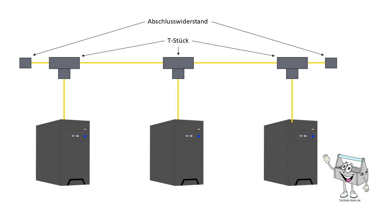Beispielhafter Aufbau eines Thinnet. Quelle: Technik-Kiste.de
