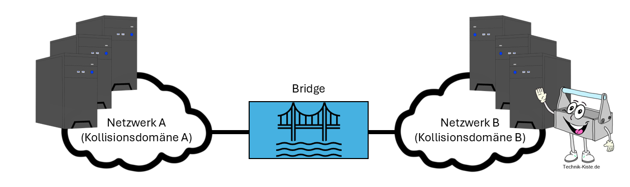 Eine Bridge (auf Deutsch: „Brücke“) ist ein Gerät oder eine Software-Komponente, die zwei oder mehr Netzwerksegmente miteinander verbindet. Sie arbeitet auf Schicht 2 des OSI-Modells (Sicherungsschicht) und dient dazu, Datenpakete gezielt zwischen den Segmenten weiterzuleiten.