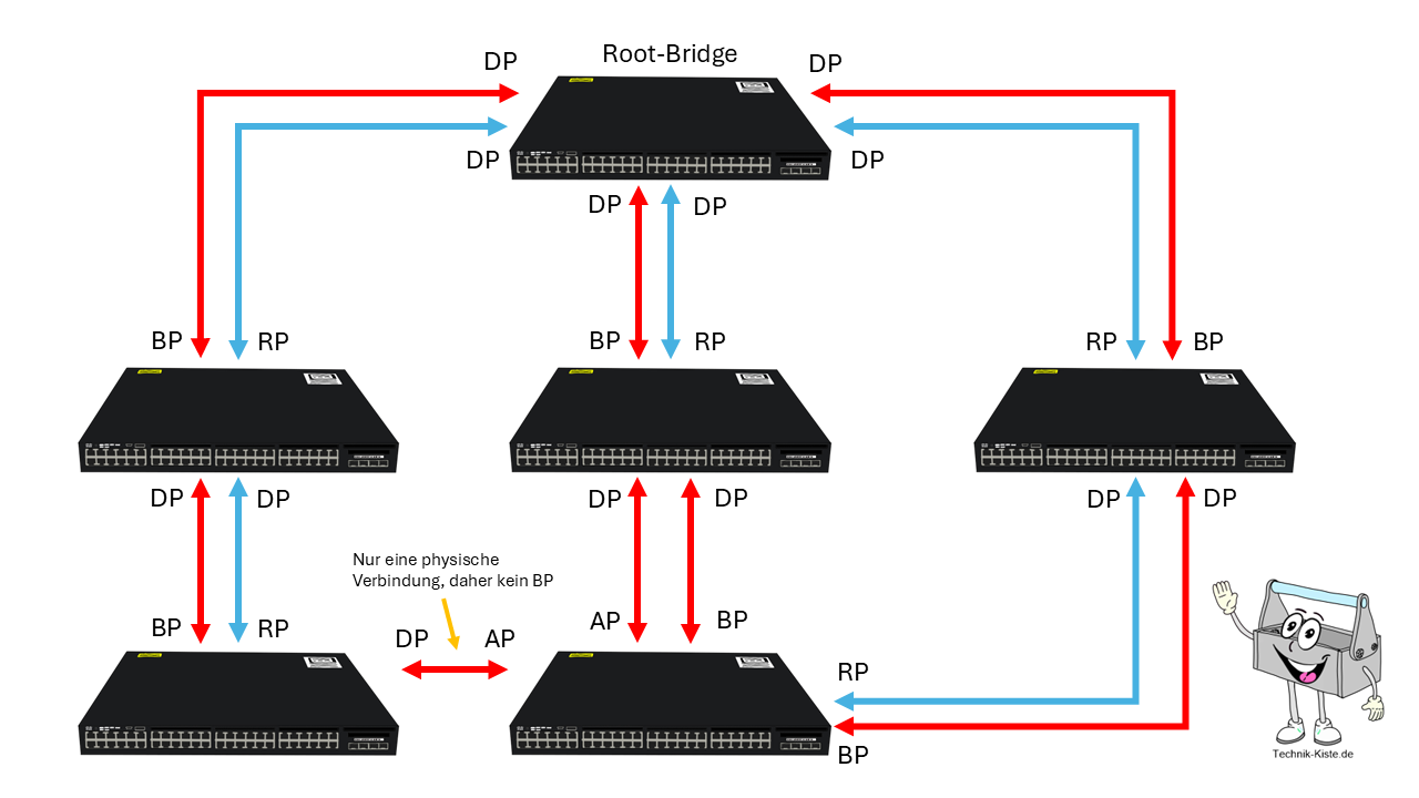 Rollen der Ports in einer beispielhaften Topologie. Quelle: Technik-Kiste.de
