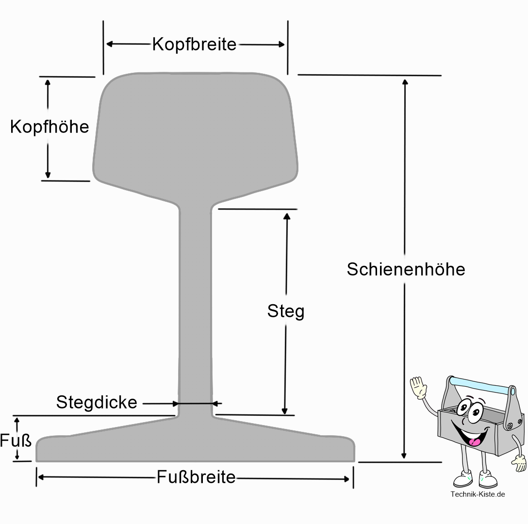 Maße einer Schiene. Quelle: Technik-Kiste.de